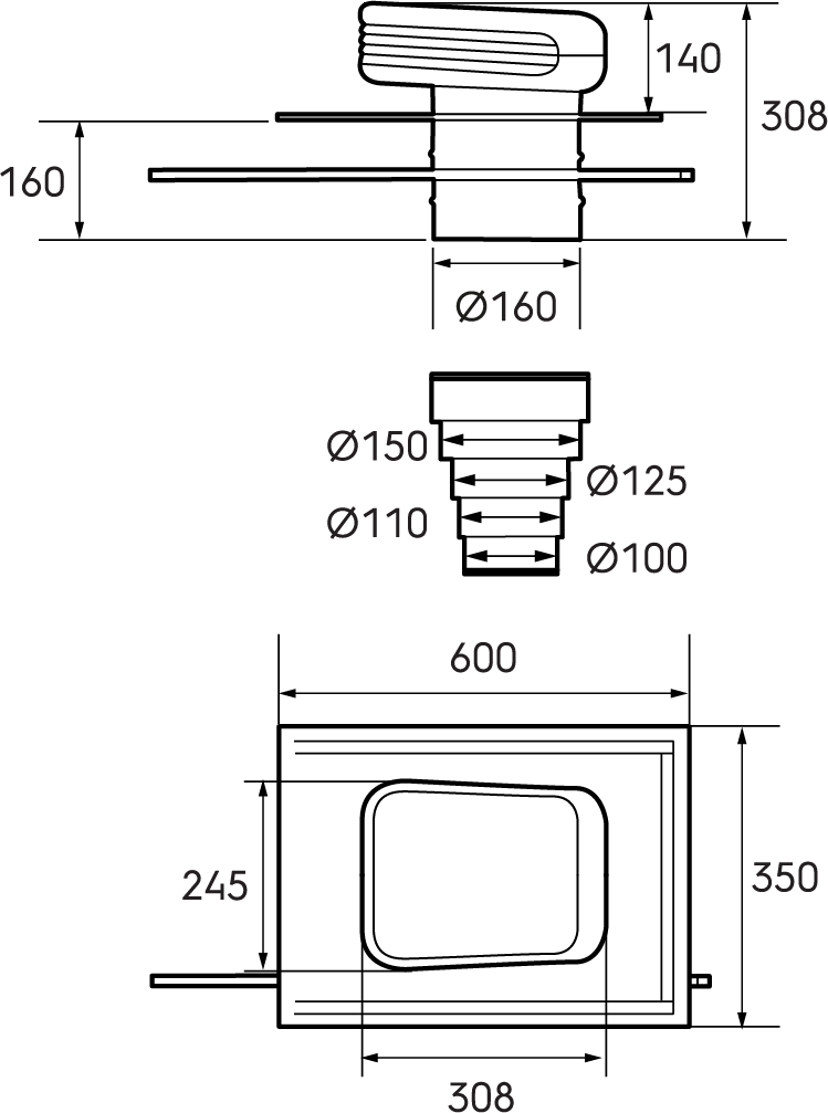 - Avec adaptateur multi-diamètre du ø100 au ø160mm