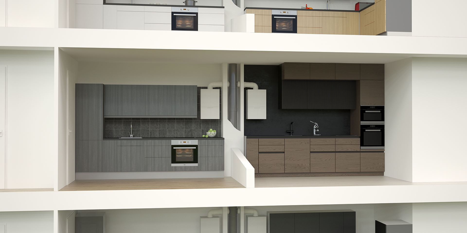 Système d’évacuation de fumée simple paroi pour chaudières à condensation en cascade