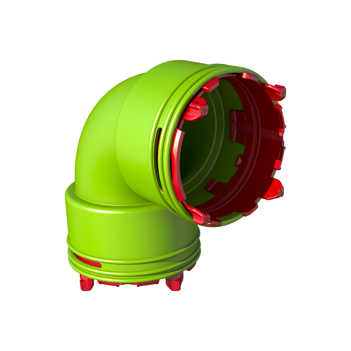 De AE48C Bocht Set 90° verbindt naadloos twee AE48C kanalen, waardoor het mogelijk wordt een bocht van 90° te maken in uw systeem, wat zorgt voor een snelle, veilige en gereedschapsloze installatie. Inclusief twee AE48C Click-Seal Ringen.