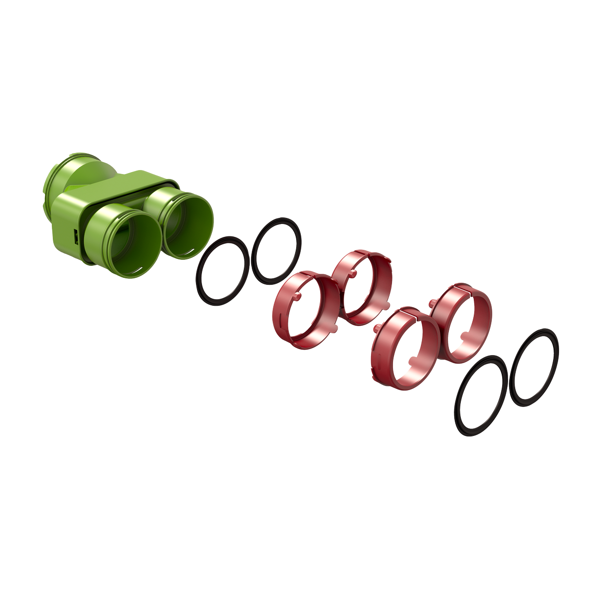 De adapter AE55SC naar 2xAE23C is ontwikkeld om een overgang te maken van het luchtverdeelsysteem AE55 Semi Circular naar 2x aansluiting AE23 Circular.