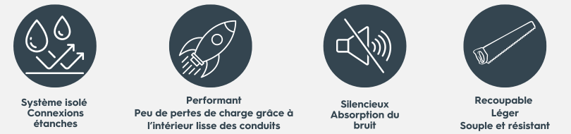 Ce kit contient tous les éléments nécessaires pour le raccordement horizontal d'un chauffe-eau thermodynamique Ø160. Il est conforme aux exigences des fabricants.