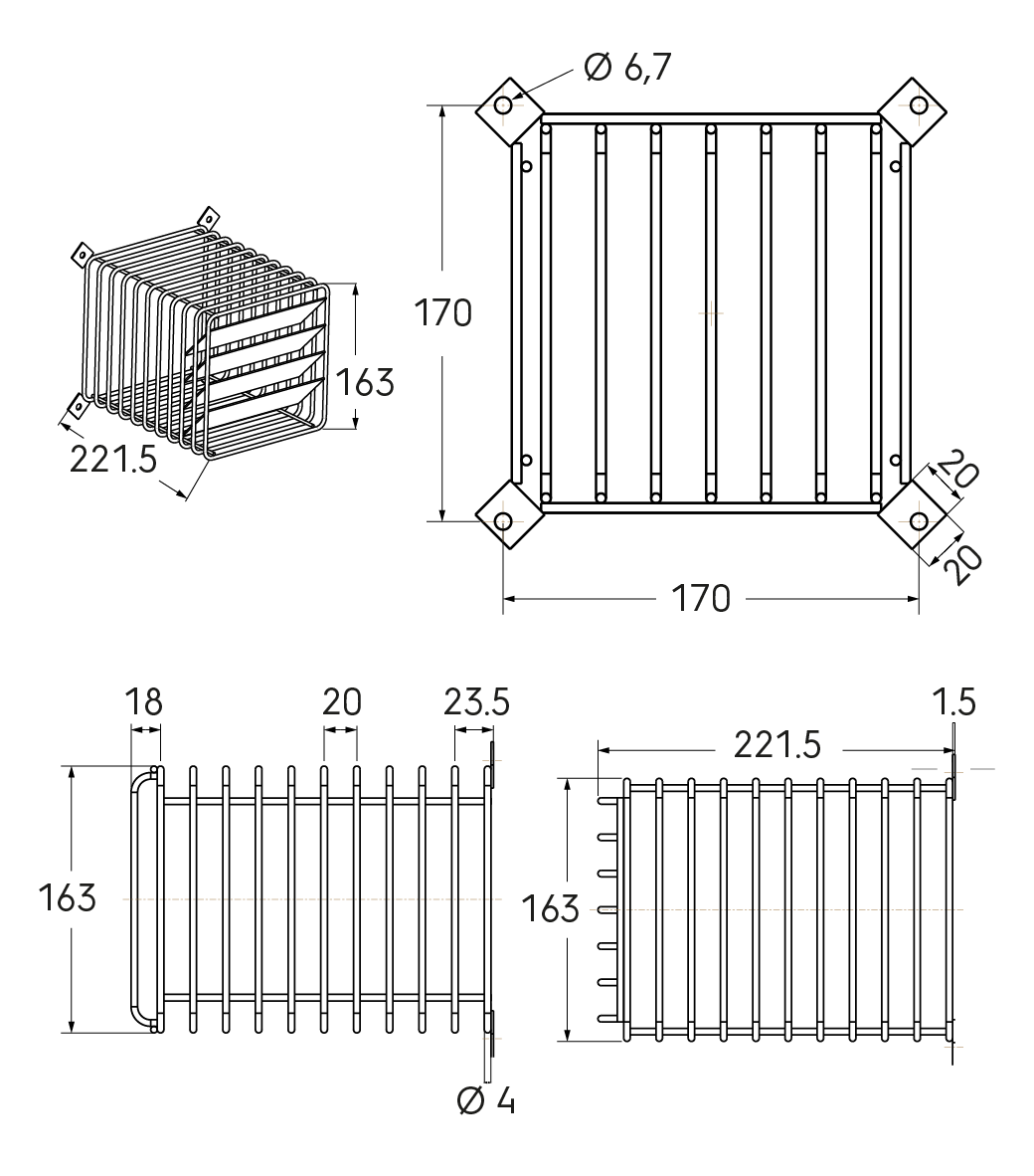 Grille de protection en inox pour terminal horizontal obligatoire lorsque leur pose s'effectue à moins d'1m80 du sol.