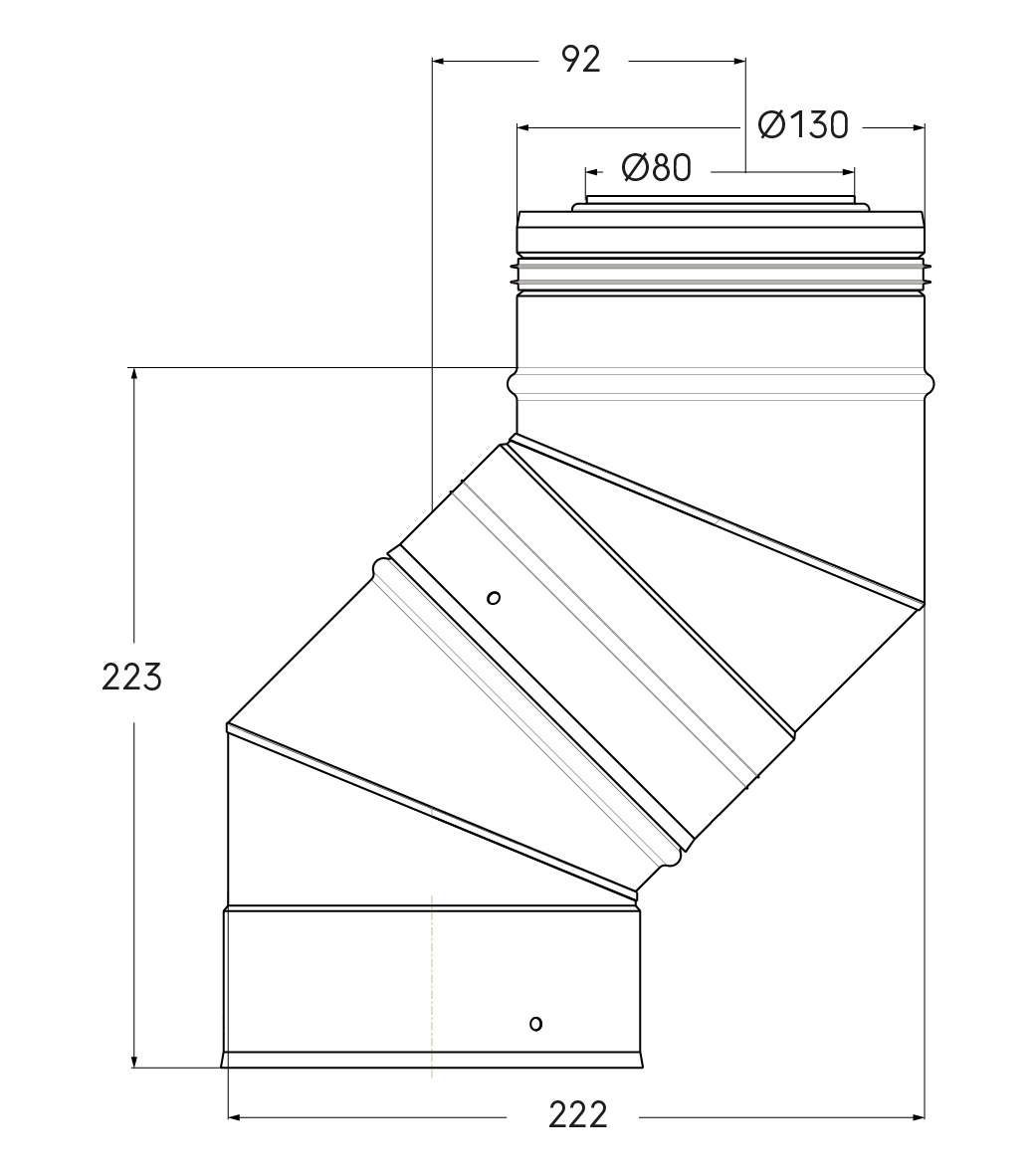Coude 3CEp pptl/galva à 45° et de diamètre 80/130.