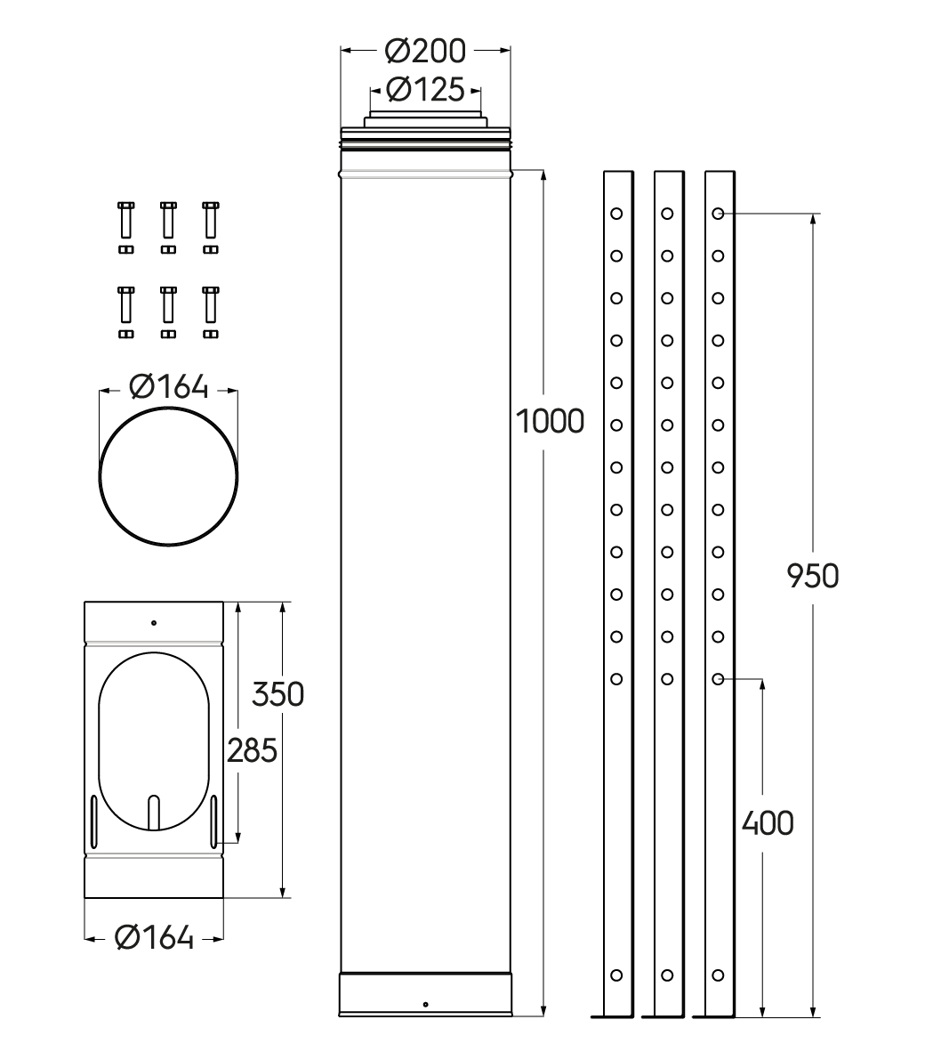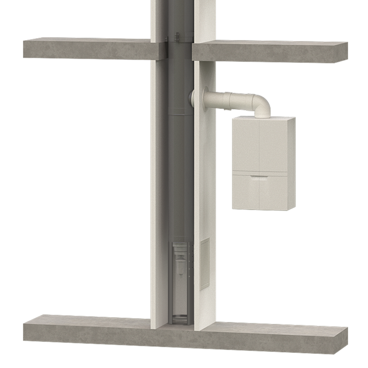 Kit trépied pour système 3CEp Condensation Concentrique diamètre 125/200 option du kit départ de base adapté pour 1 appareil.