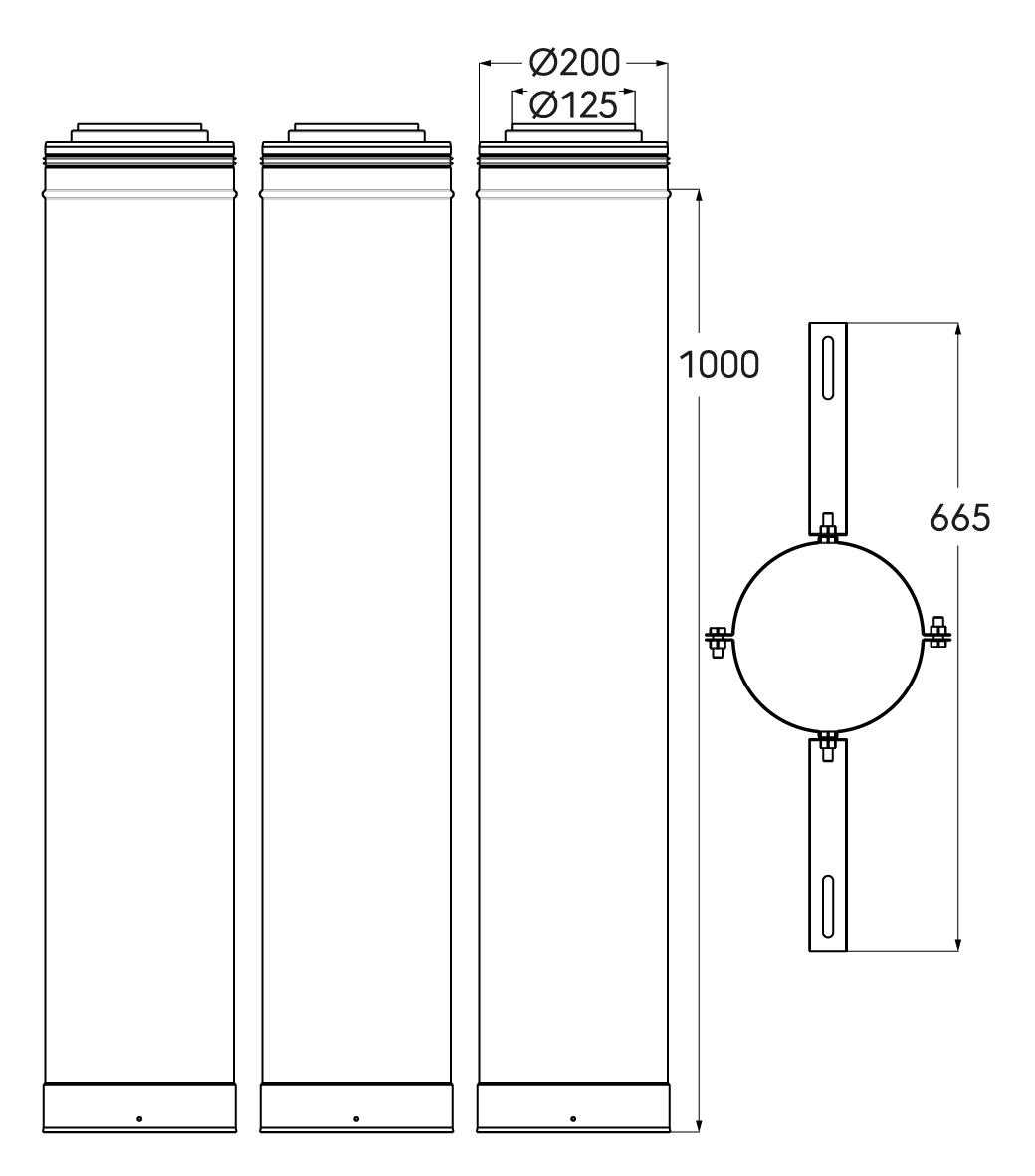 Kit étage pour système Rolux 3CEp Condensation Concentrique en 125/200 comprenant tous les éléments pour équiper un étage sans chaudière.