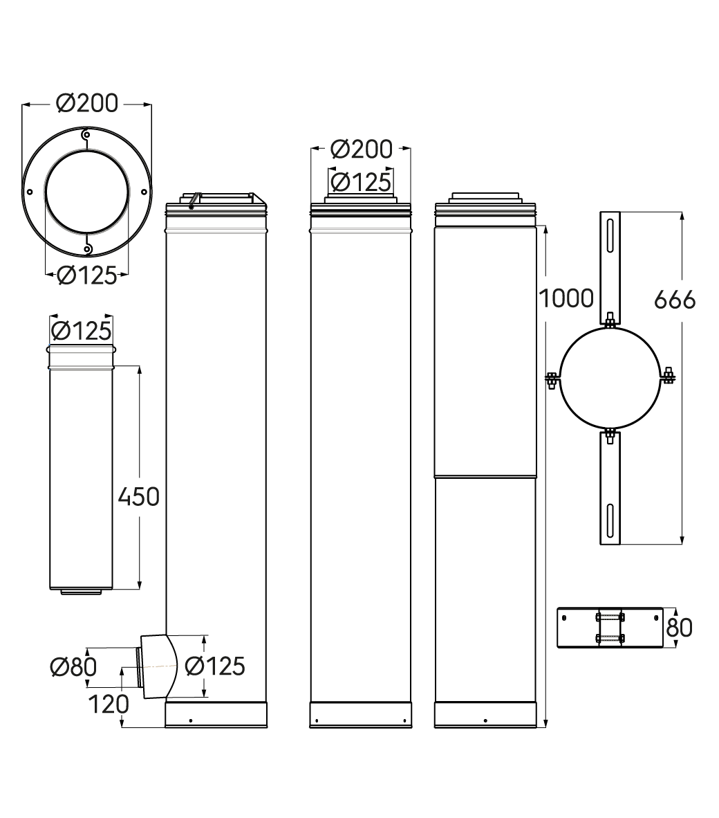Kit étage pour système Rolux 3CEp Condensation Concentrique en 125/200 comprenant tous les éléments pour équiper un étage avec une chaudière.