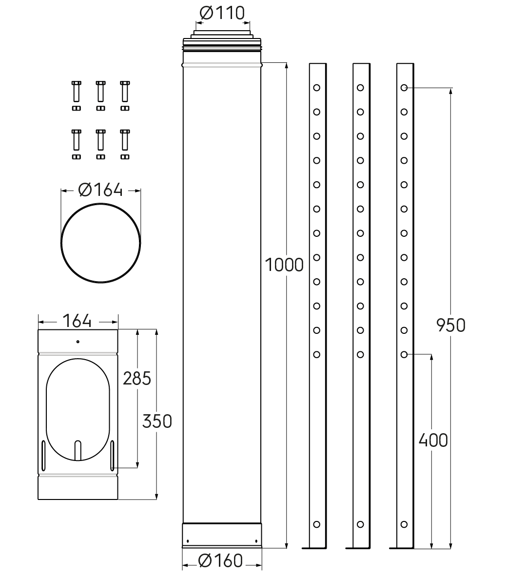 Kit trépied pour colonne 3CEp diamètre 110/160, option du kit départ de base adapté pour 1 appareil.