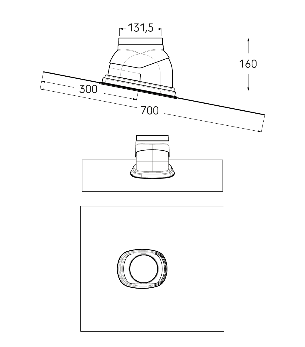 Ce solin est composé d'une large bavette en plomb peint de dimension 700x600. Sa rotule permet d'adapter de régler précisemment le solin à la pente du toit.