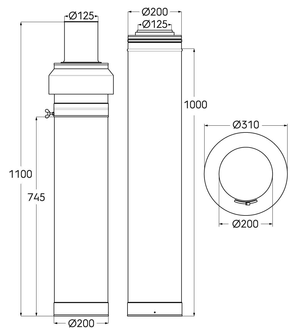 Kit 3CEp de toiture D125/200mm PPtl/acier haut.2500mm avec terminal noir