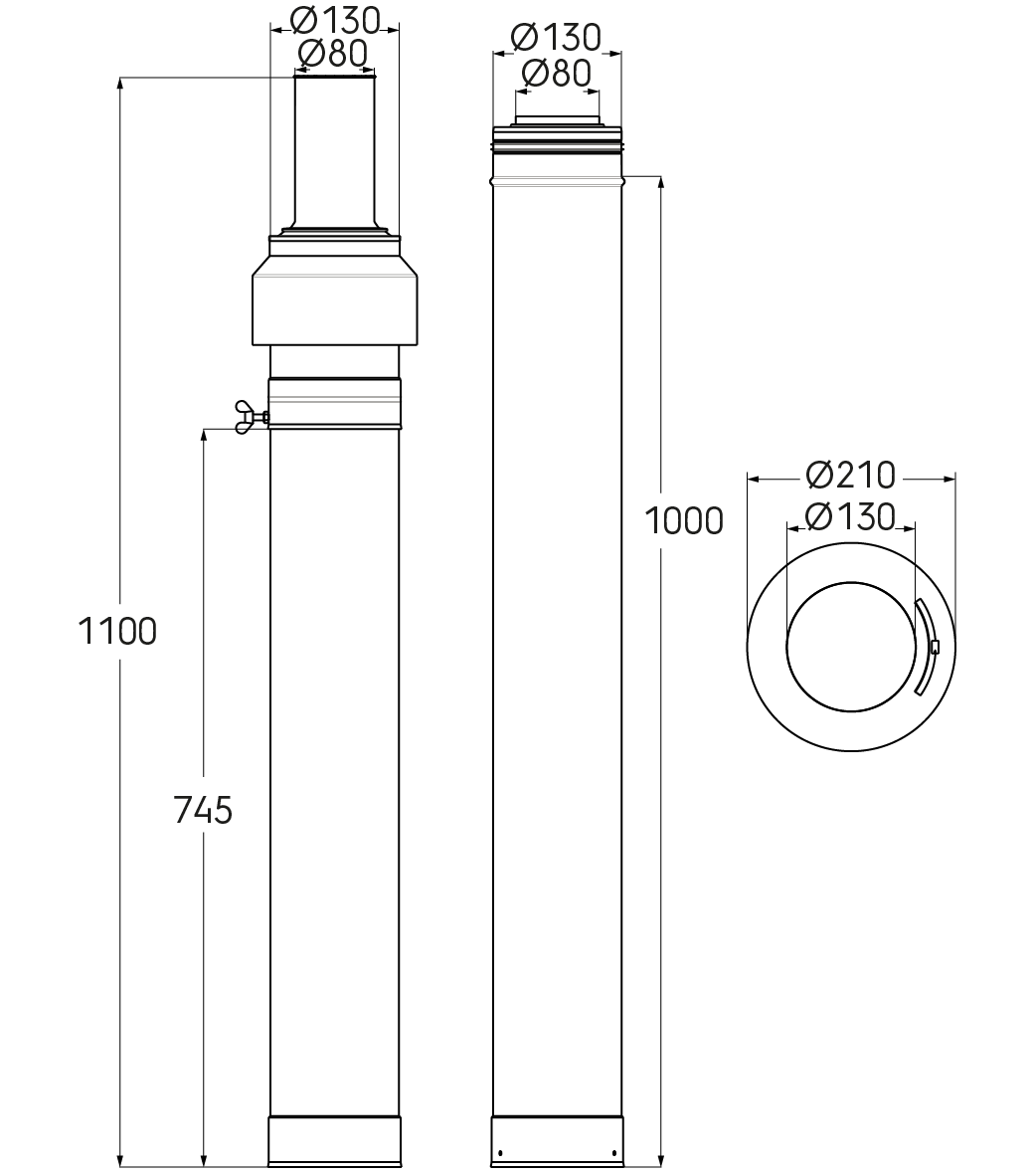 Kit 3CEp de toiture D80/130mm PPtl/acier haut.2500mm avec terminal inox