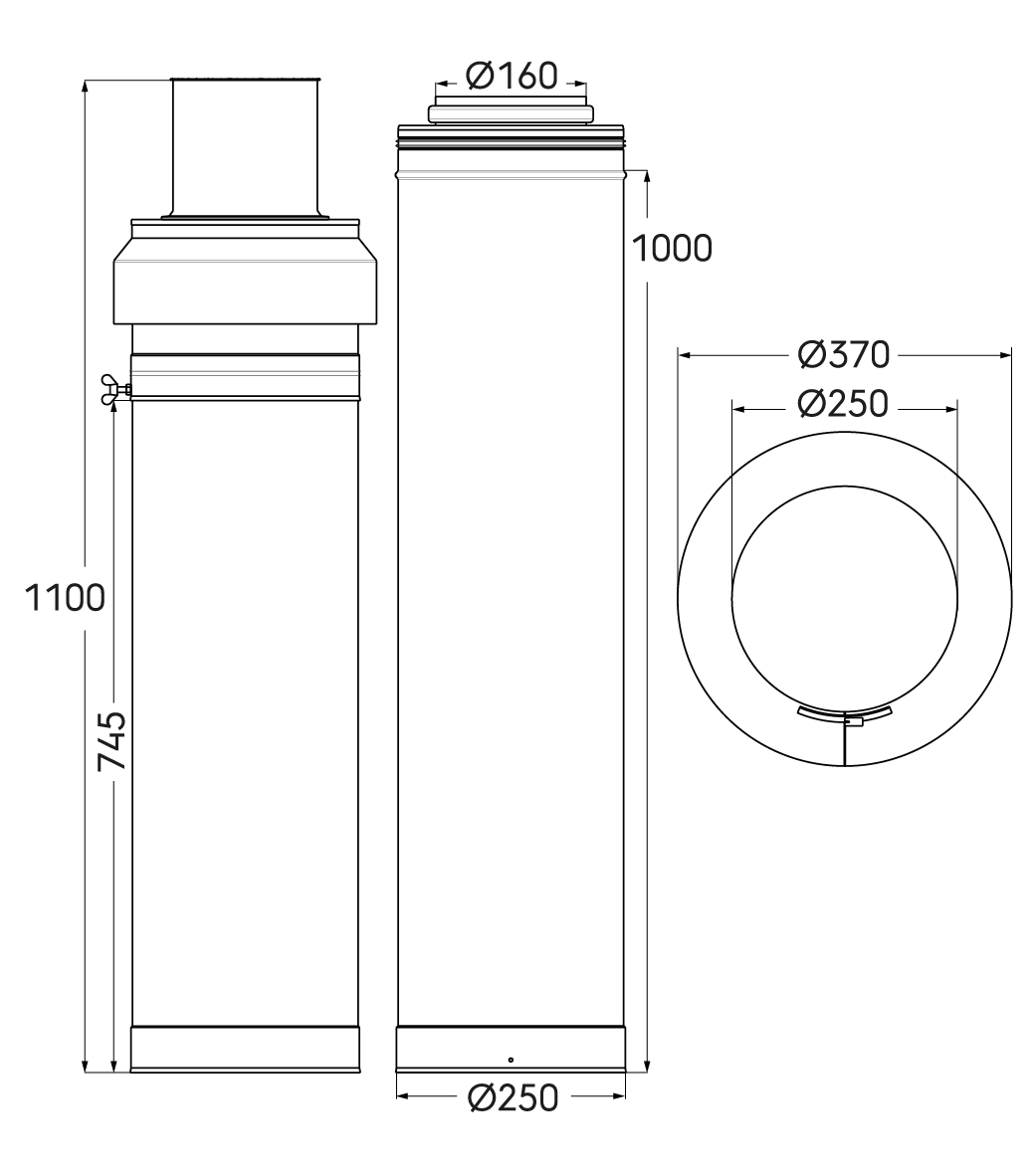 Kit toiture pour système Rolux 3CEp Condensation Concentrique en 160/250 comprenant tous les éléments pour se raccorder au terminal noir avec entraxe dernier piquage à solin de 2500.
