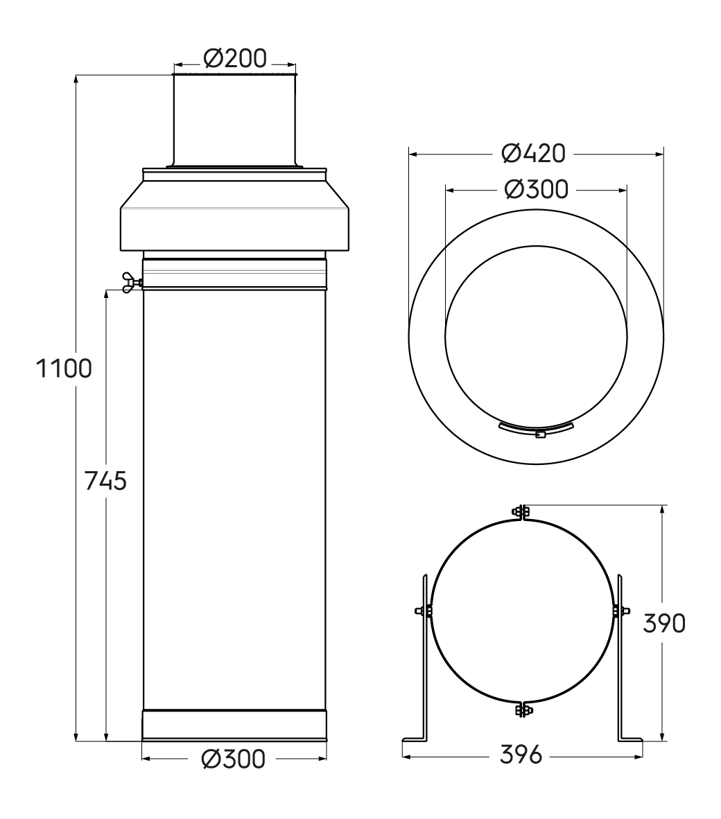 Kit toiture pour système Rolux 3CEp Condensation Concentrique en 200/300 comprenant tous les éléments pour se raccorder au terminal noir avec entraxe dernier piquage à solin de 1500.