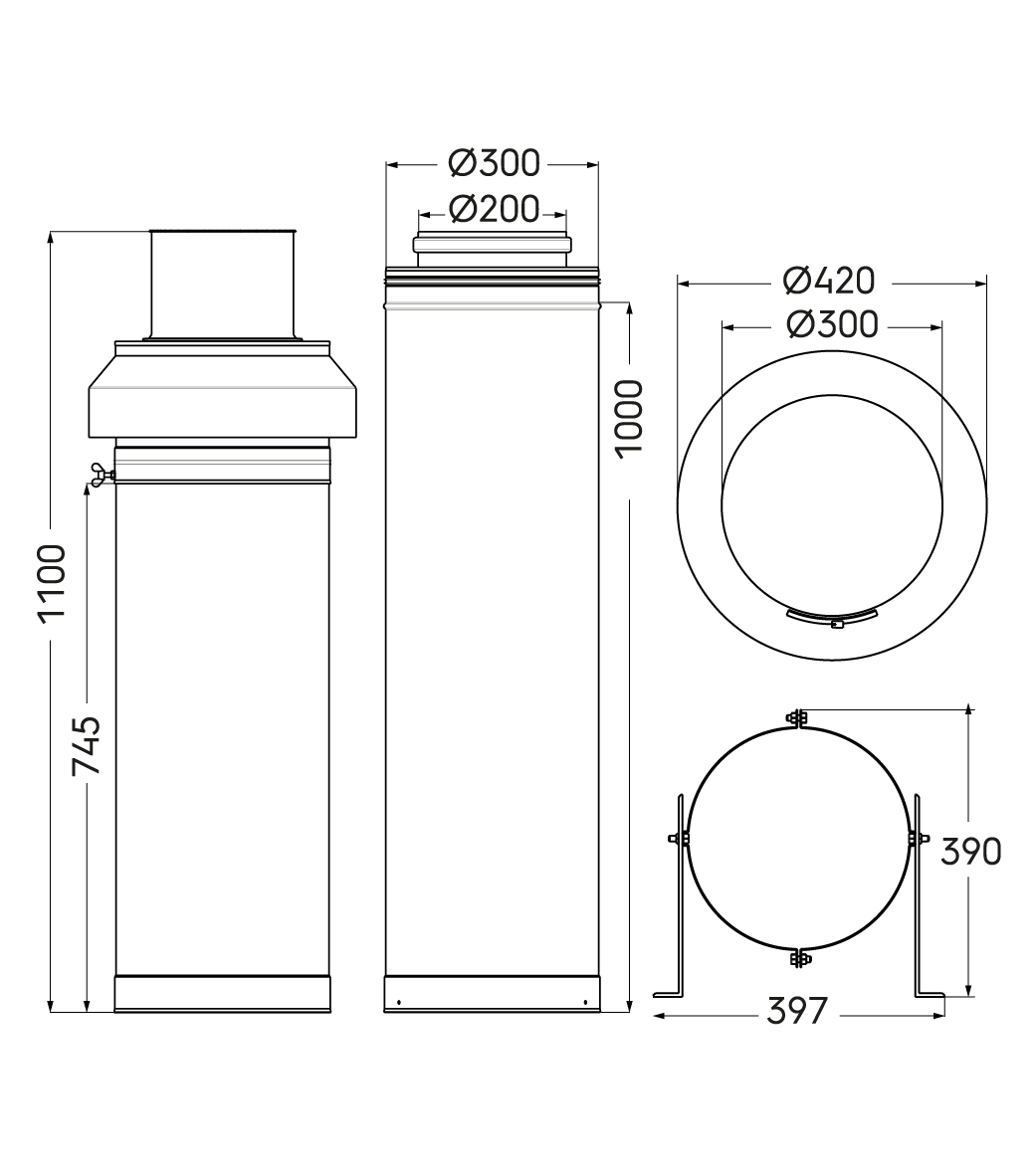 Kit toiture pour système Rolux 3CEp Condensation Concentrique en 200/300 comprenant tous les éléments pour se raccorder au terminal noir avec entraxe dernier piquage à solin de 2500.