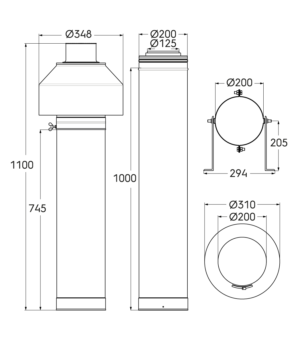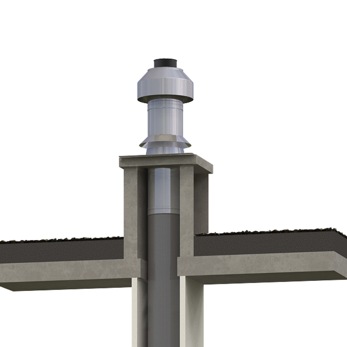 Kit toiture pour colonne 3CET diamètre 125/200 comprenant tous les éléments pour se raccorder au terminal inox avec entraxe entre dernier piquage à solin de 1500.