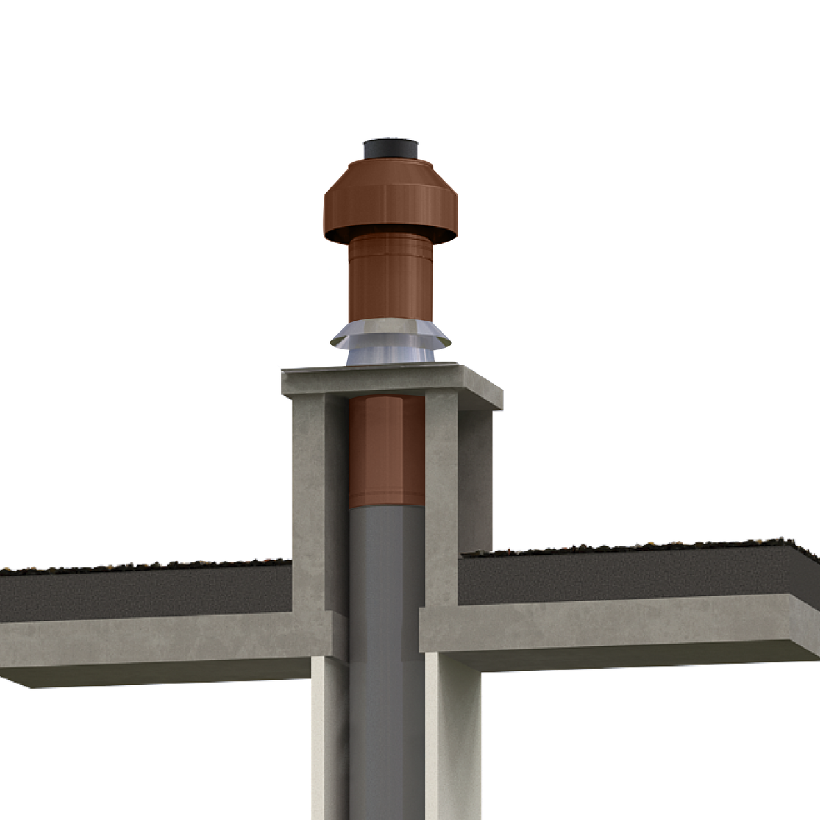 Kit toiture pour colonne 3CET diamètre 200/300 comprenant tous les éléments pour se raccorder au terminal couleur ocre avec entraxe entre dernier piquage à solin de 1500.