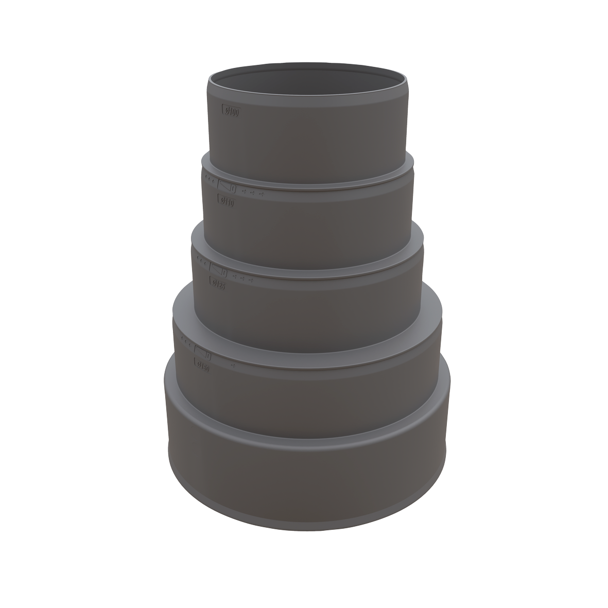 This adaptor is a versatile connector designed to link Ubbink roof tile and slate vents to a wide range of duct diameters. Thanks to its stepped design, the adaptor can be cut to size, ensuring a perfect and secure fit for ducting systems from 100 mm up to 160 mm.