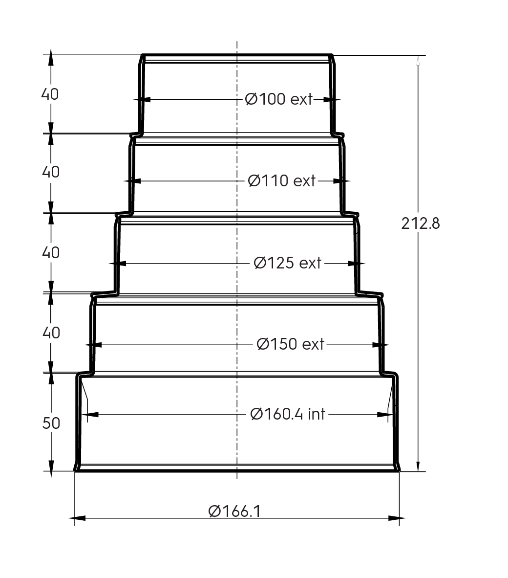 - One adaptor fits five duct sizes from 100 to 160 mm.