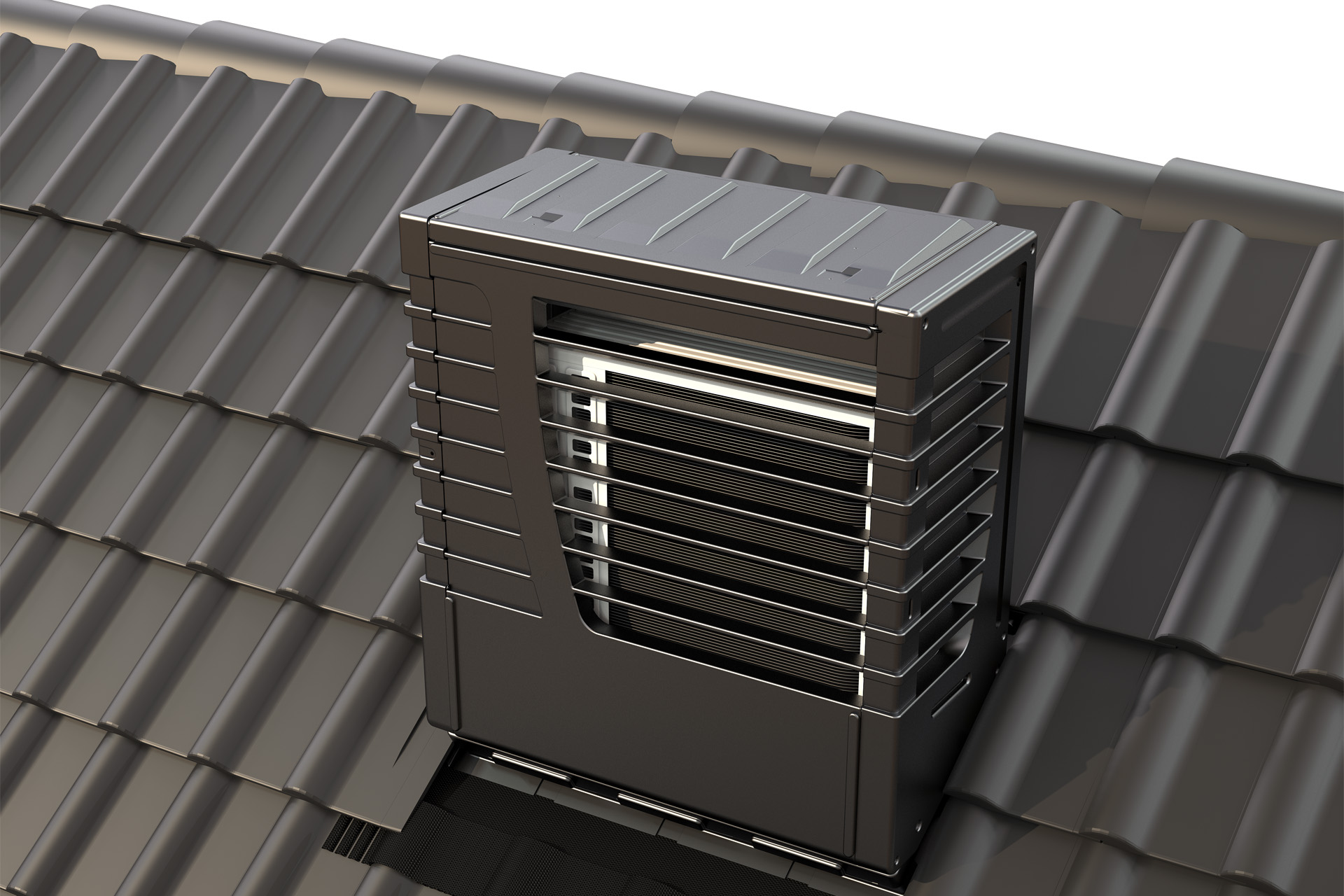 Strak afgewerkt op het dak zorgt de Ventus voor een optimale aan- en afvoer van ventilatielucht.