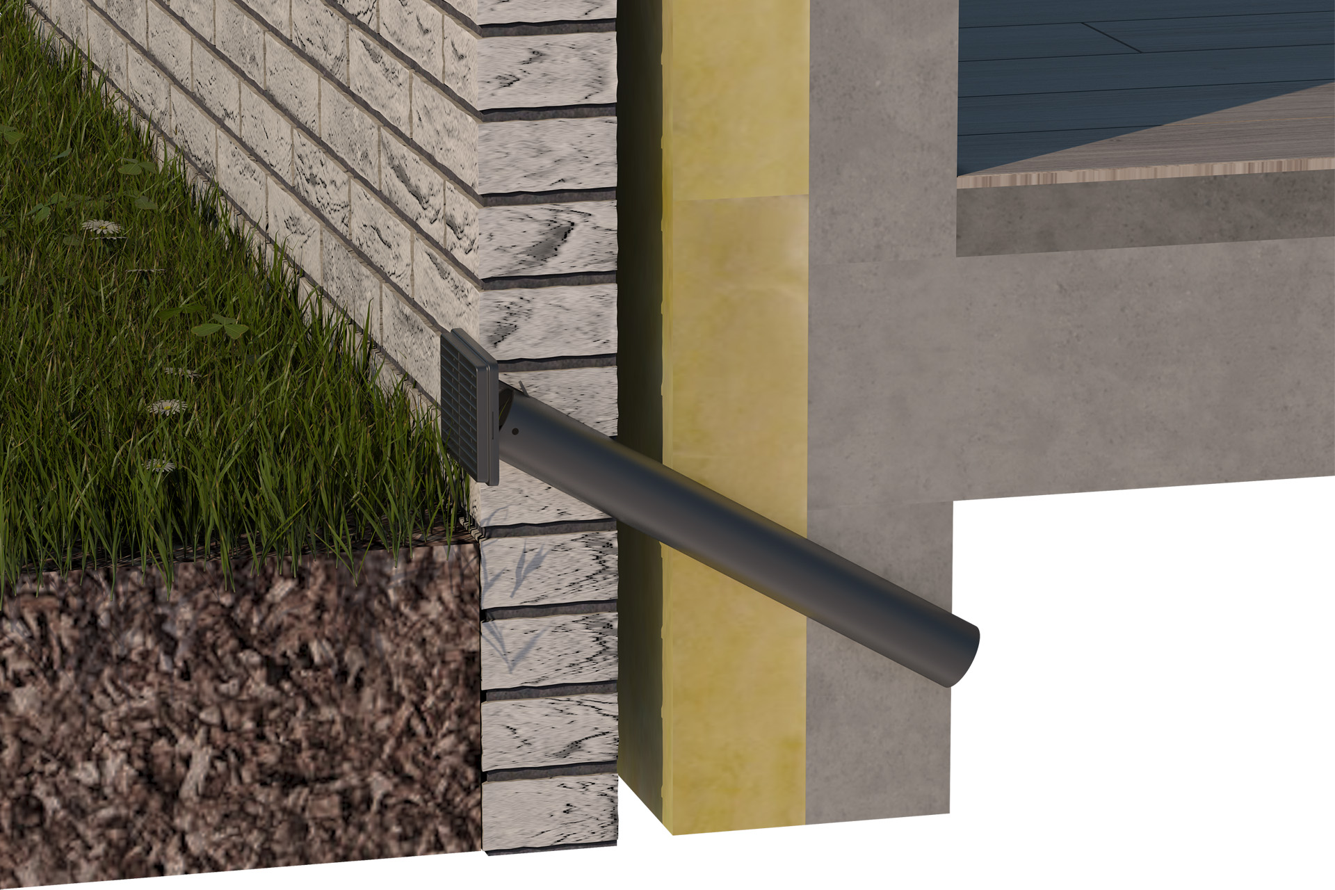 De kunststof VloerVent Renovatiekoker is eenvoudig aan te brengen in bestaande muren om de ventilatie in kruipruimten en kelders van gebouwen en woningen te verbeteren.