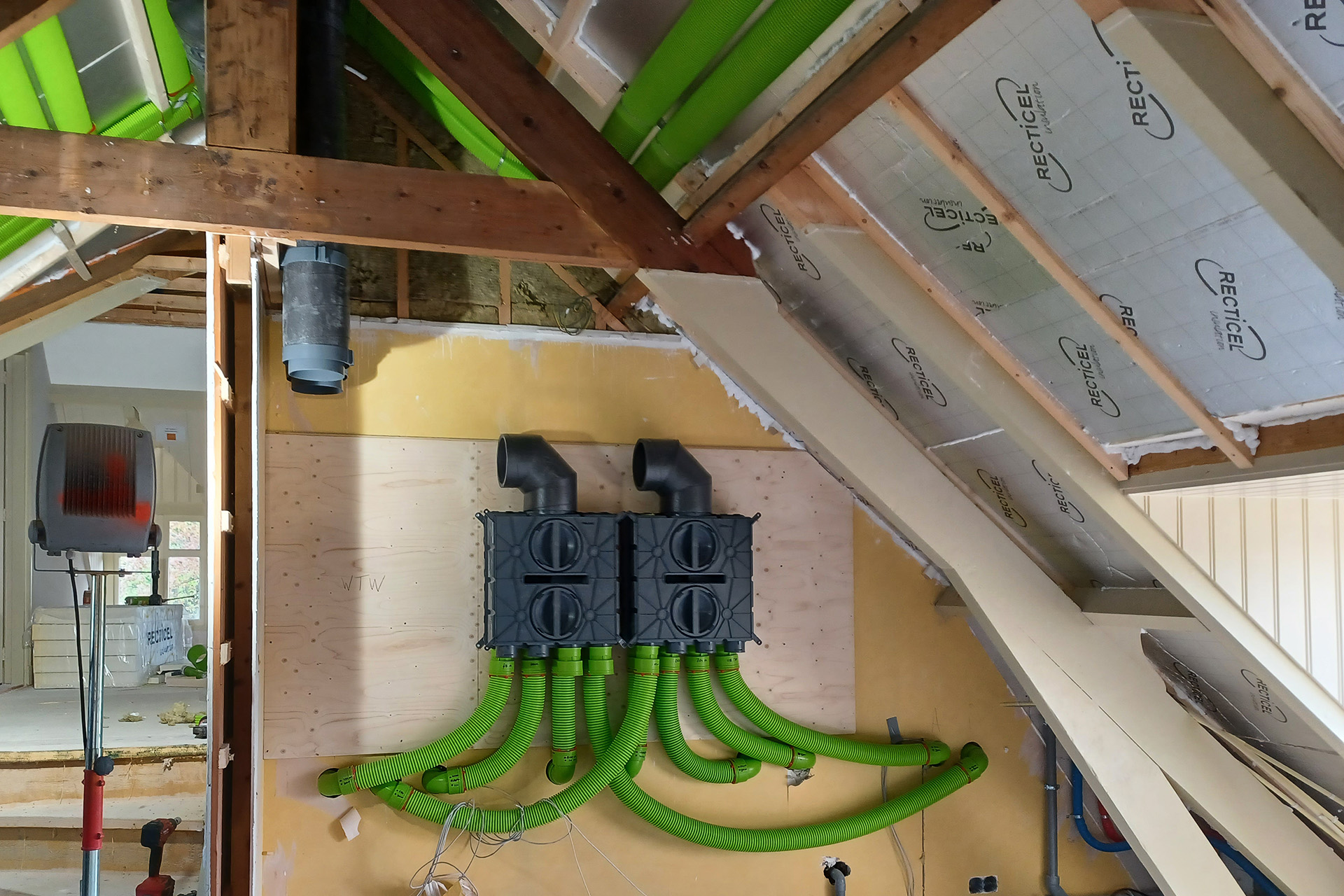 Aan de Schiedijk nabij Delft staat een monumentale boerderij die door Installatiebedrijf Joop Keyzer voorzien is van nieuwe verwarmings- en ventilatiesystemen. Die meervouden zijn geen versprekingen, het huis heeft namelijk een dusdanig groot oppervlak dat vier WTW-units nodig zijn; twee in de woonkamer en keuken, één voor de kantoren en één voor de bovenverdieping. Al het leidingwerk wordt uitgevoerd met Air Excellent van Ubbink zodat de Itho Daalderop units (QualityFlow) optimaal functioneren.