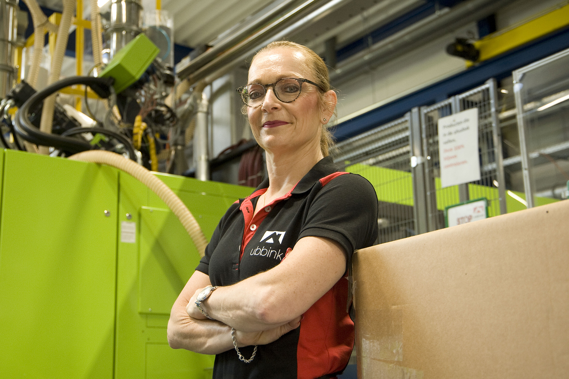 “Zoals een voetbalcoach in zijn trainingspak op het trainingsveld staat, zo draag ik bij Ubbink altijd dezelfde bedrijfskleding als de medewerkers, vertelt Carin Hendriksen, algemeen directeur bij Ubbink. In mijn eerste weken hier werd gezegd: ‘Je lijkt wel één van ons’. En dat ben ik ook! Ik ben onderdeel van het team. Met de kleding wil ik dat aangeven. Ik hoop zo de afstand zo klein mogelijk te houden en wil graag zelf horen wat er leeft bij medewerkers.